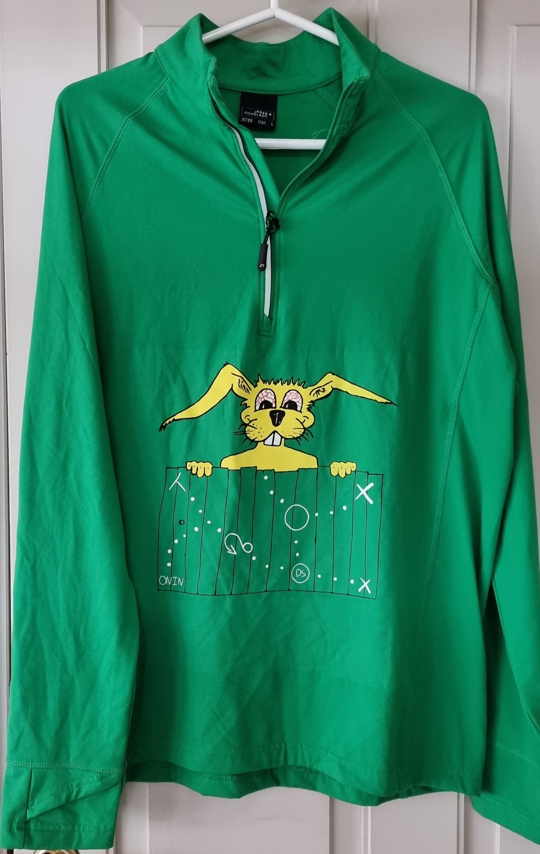 Grøn langærmet T-shirt. Opkradset inderside, og hul til tommelfinger. Herremodel: 1 stk. L til 200 kr. pr. stk.